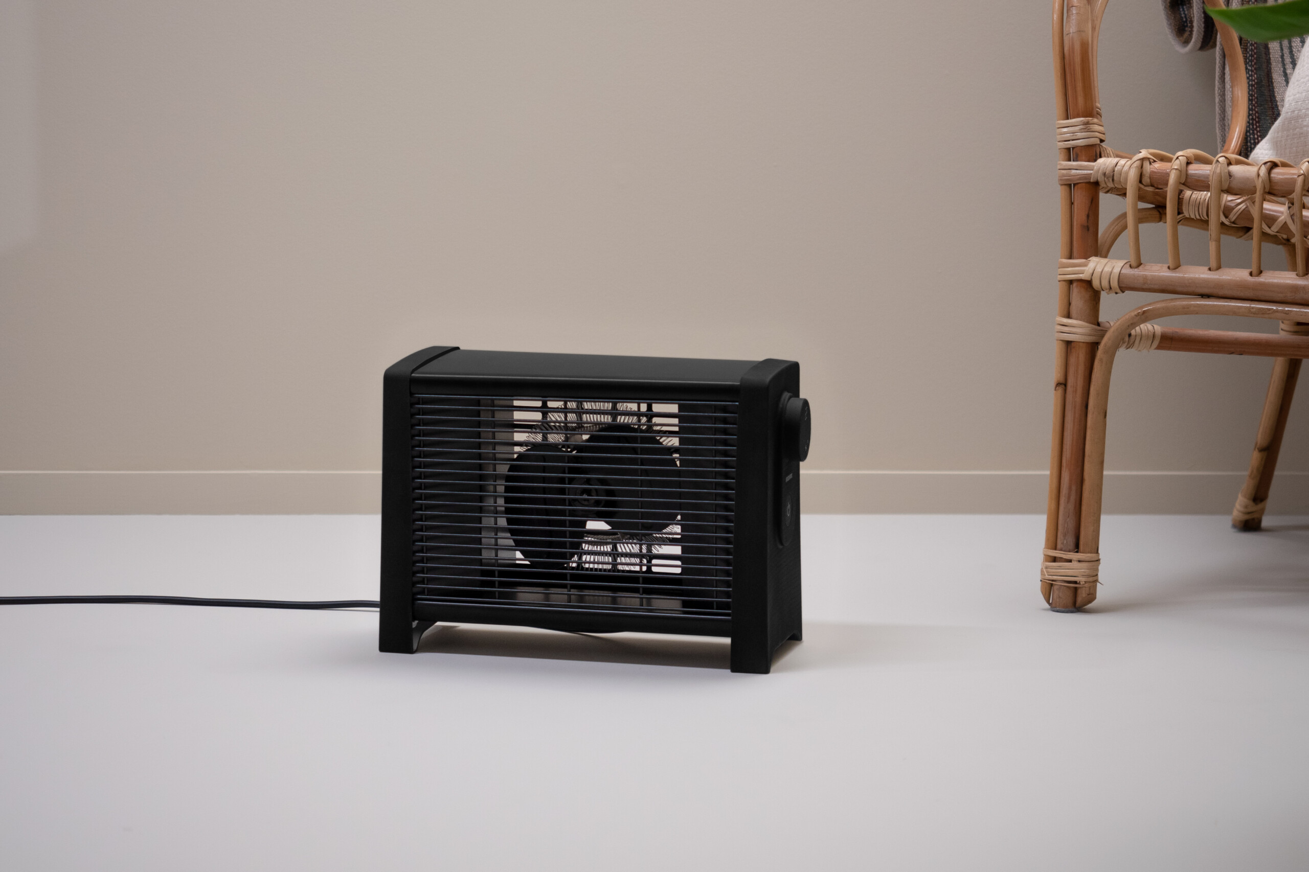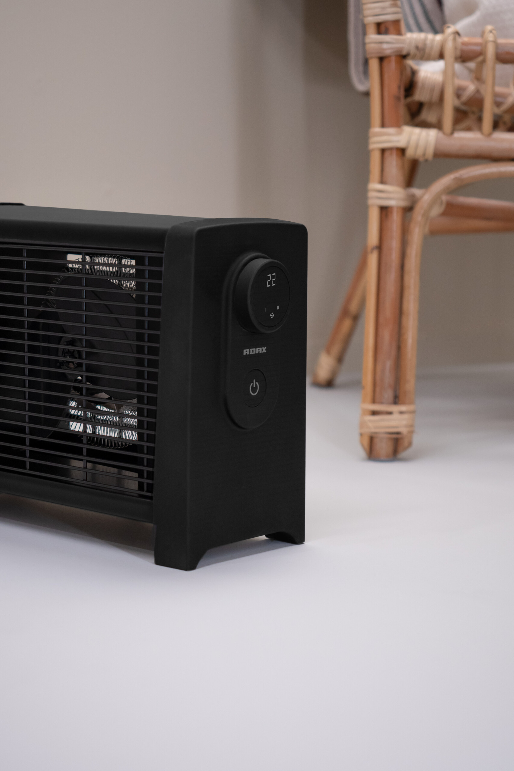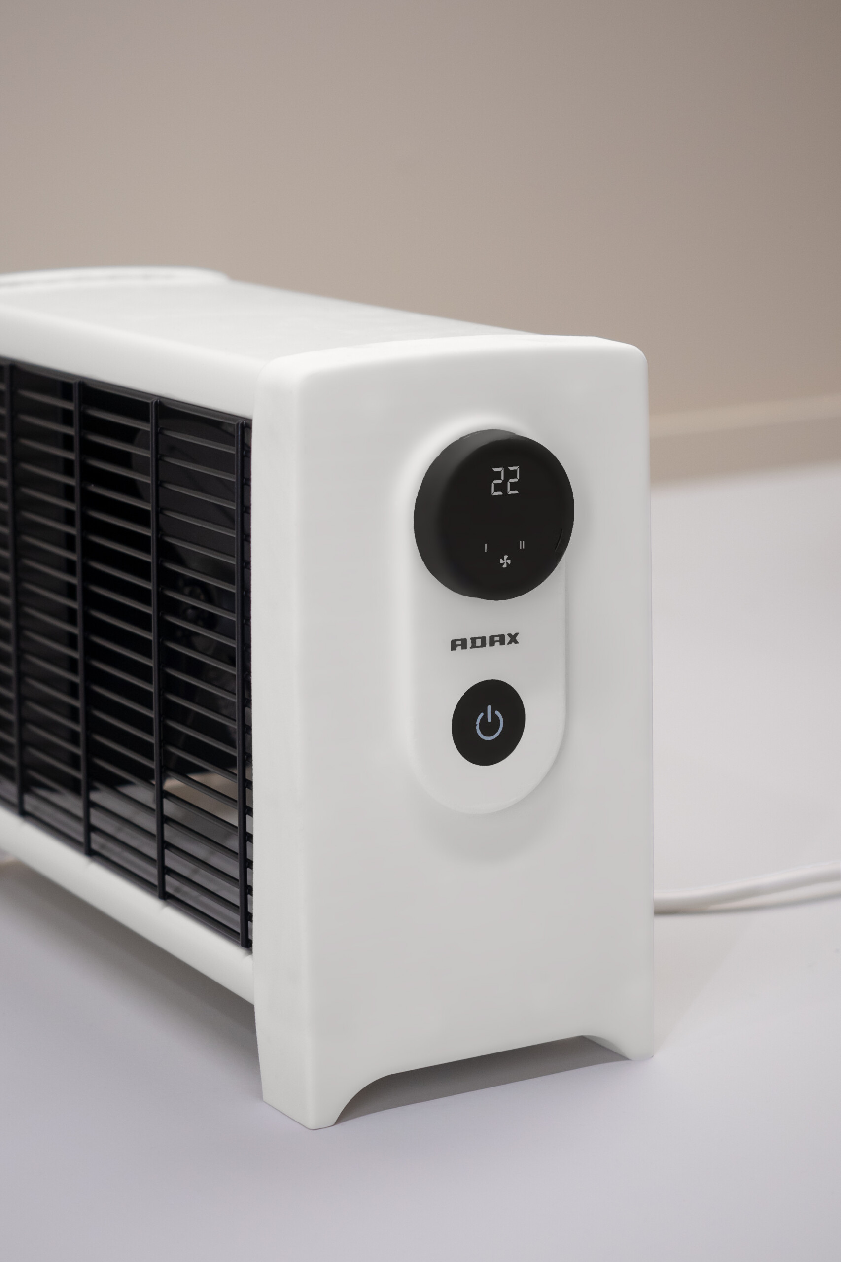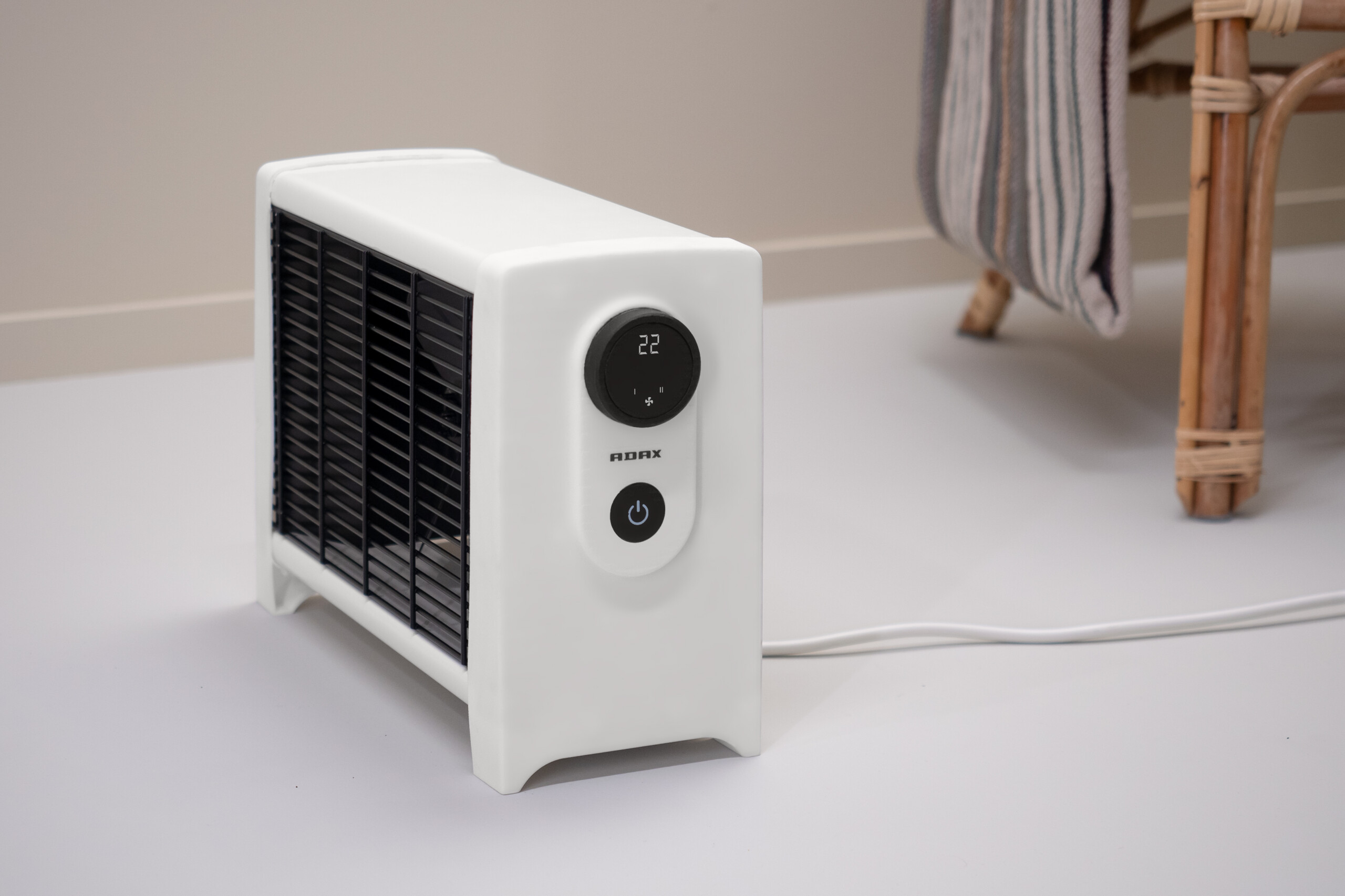 Ena har et tidløst, moderne design og leveres i hvit og matt sort. Den stillegående viften sørger for effektiv varmespredning, og den svært nøyaktige digitale termostaten lar deg velge mellom tre ulike wattstyrker (800W/1200W/2000W) som gir god fleksibilitet. Sikkerhetsfunksjoner som veltesikring og beskyttelse mot overoppheting er selvsagt ivaretatt.